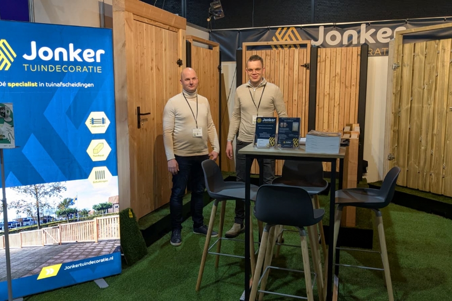 Bij Jonker Tuindecoratie zagen we Jan van Dalfsen en Arjan van Raalte. Staan dit jaar voor het eerst op de beurs, hebben al behoorlijk wat aanloop gehad. Jonker Tuindecoratie is een vakbekwaam en innovatief bedrijf. Ze zijn gespecialiseerd in het vervaardigen van houten producten voor uw tuin.