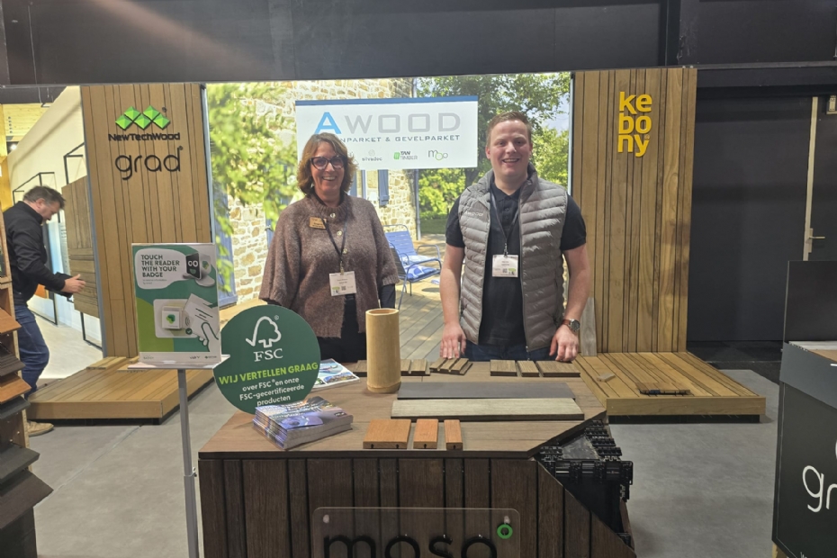 Van Vliet Duurzaamhout was met Leon Blom, Natasja Bos en Marcel Dorrestijn op de GSV. Hebben veel aanloop van veel relaties, wat logisch is, want ze staan bekend als de nummer één leverancier van duurzaam Europees hout.