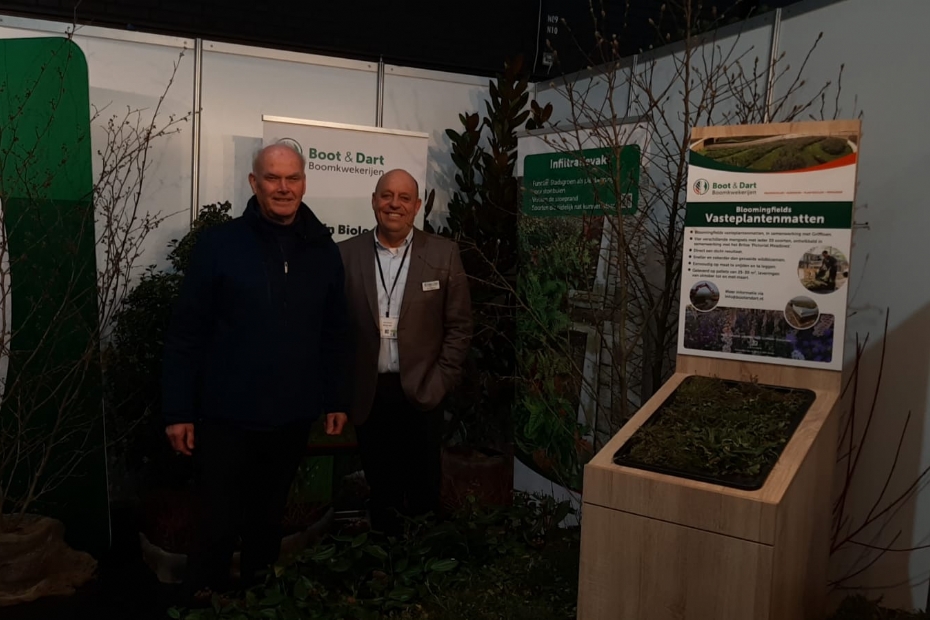 Boot & Dart Boomkwekerijen komt met een vastelplantenmap, die samen met Griffioen Wassenaar is ontwikkeld. Op de stand zagen we Jan de Vries en Paul Windhorst.