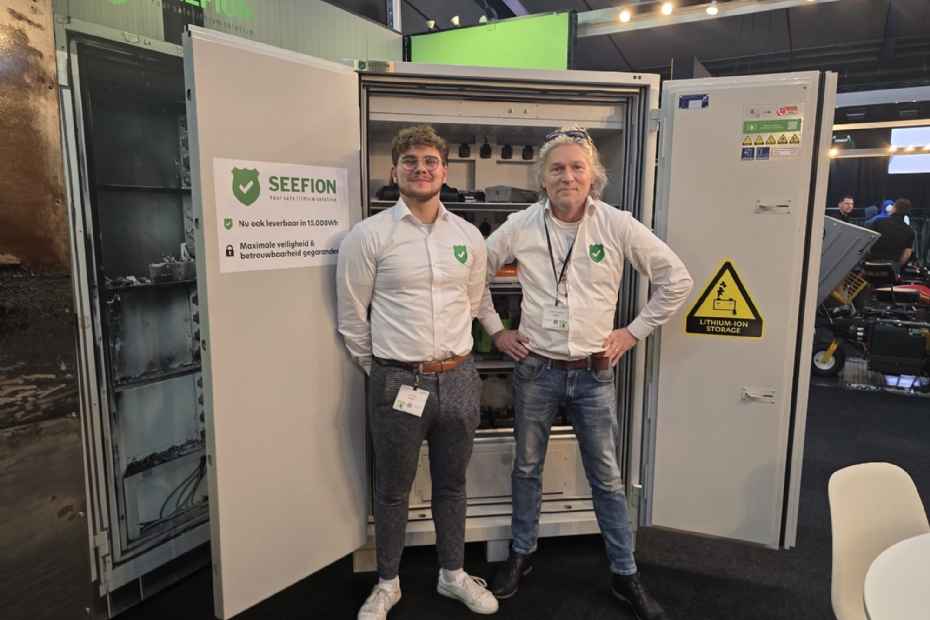 Hans Stoffers, de nieuwe accountmanager voor Nederland, en Remco van Kuilenburg van Seefion, de kluis voor alle merken accu's. Tevens de enige kluis met de slimme merkgebonden indeling accesoires.