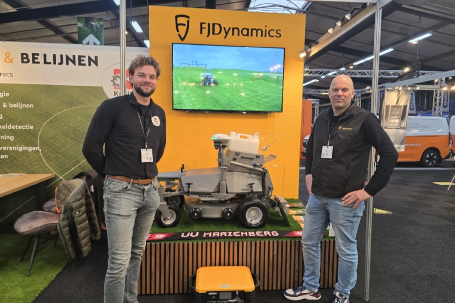 Lennart Mussche en Erwin Balder van Knoll met de FJDynamics RM21 Combo, maaier én belijner ineen! Werkt als een speer, naar volle tevredenheid. Gewoon zoals het hoort.