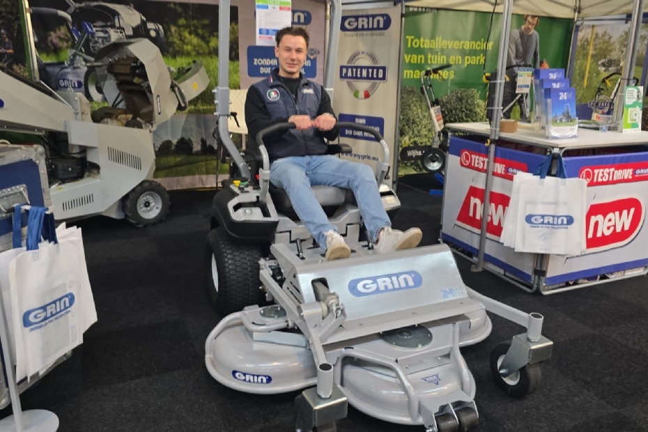 Lorenzo Ramars, nieuwe vertegenwoordiger voor Grin Nederland op de nieuwe zero turn ZM lijn. Professionele maaier, de enige met een schoon maairesultaat zonder opvang, aldus Ramars.