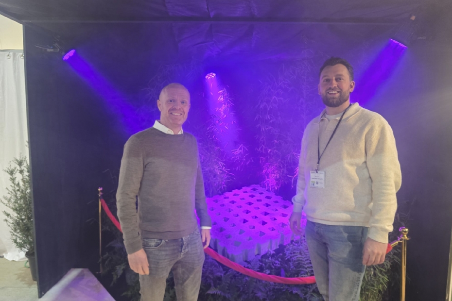 Toon van der Sanden en Rogier Dubel van Artistone staan voor de gloednieuwe introductie van de weave. De weave is een klimaatadaptatie tegel in totaal concept, in vier verschillende tegels, wat veel ontwerpvrijheid geeft. Makkelijk te leggen, en past goed bij luxe tuinen om water te infiltreren en meer groen te brengen. Ook voor groene parkeerplaatsen in de openbare ruimte!