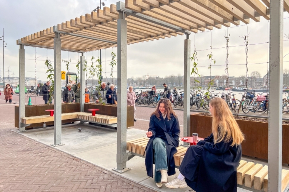 In samenwerking met de Gemeente Amsterdam en de Hogeschool van Amsterdam (HvA) heeft Streetlife een Rough&Ready Linear Shade geïnstalleerd voor de Openbare Bibliotheek Amsterdam (OBA). Deze pergola van 3 bij 8 meter combineert zitgelegenheid met klimplanten en is een handige oplossing voor plekken waar het planten van bomen niet mogelijk is. Het doel: stedelijke hitte tegengaan, biodiversiteit bevorderen en de leefkwaliteit van de openbare ruimte verbeteren.