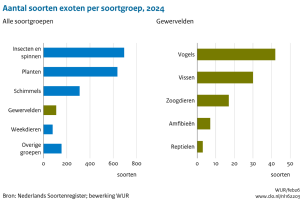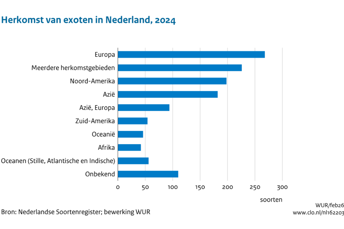 Het aantal invasieve exoten in Nederland neemt al jaren toe. Vooral in de afgelopen veertig jaar is die groei versneld. Het gaat vooral om insecten en planten die hier terechtkomen via handel en transport, vaak afkomstig uit Europa, Noord-Amerika of Azië. Deze soorten kunnen schade veroorzaken aan natuur, infrastructuur en openbare ruimte. De totale kosten zijn lastig vast te stellen, maar lopen duidelijk op.