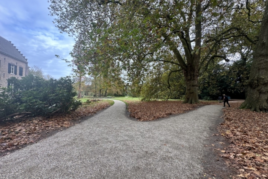 De verouderde lanen en paden zijn vervangen door o.a. halfverharding Aquado Natural. Dit is het begin van het terugbrengen van de allure die het landgoed ooit had, maar dan in onze moderne tijd.
