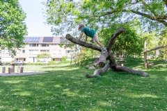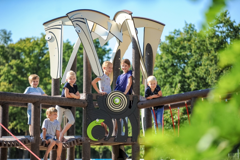 Gesproken over kwaliteit en veiligheid: hoe zit het met slijtage, hitte en intensief gebruik? W&H Play verwijst naar onafhankelijke testen en keurmerken, waaronder REACH en het Duitse Blauwe Engel-keurmerk. Ook heeft Westfalia Spielgeräte volgens Vink onderzoek gedaan naar mogelijke emissie van microplastics. 'Het materiaal is niet schadelijk voor de bodem en voor water en heeft geen impregnering of lak nodig', verklaart hij. 'Het is splintervrij, scheurvast en sterk. Bovendien is een lange levensduur een vorm van duurzaamheid: als je iets al na tien jaar moet vervangen, ben je niet duurzaam bezig. Onze constructies zijn ontworpen om lang mee te gaan; we geven twintig jaar garantie op de kunststof constructie. De toestellen zijn ook weerbestendig en bestand tegen vandalisme en zelfs tegen zeewater en zout.'