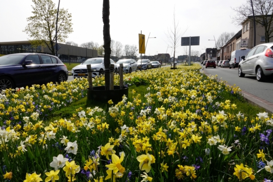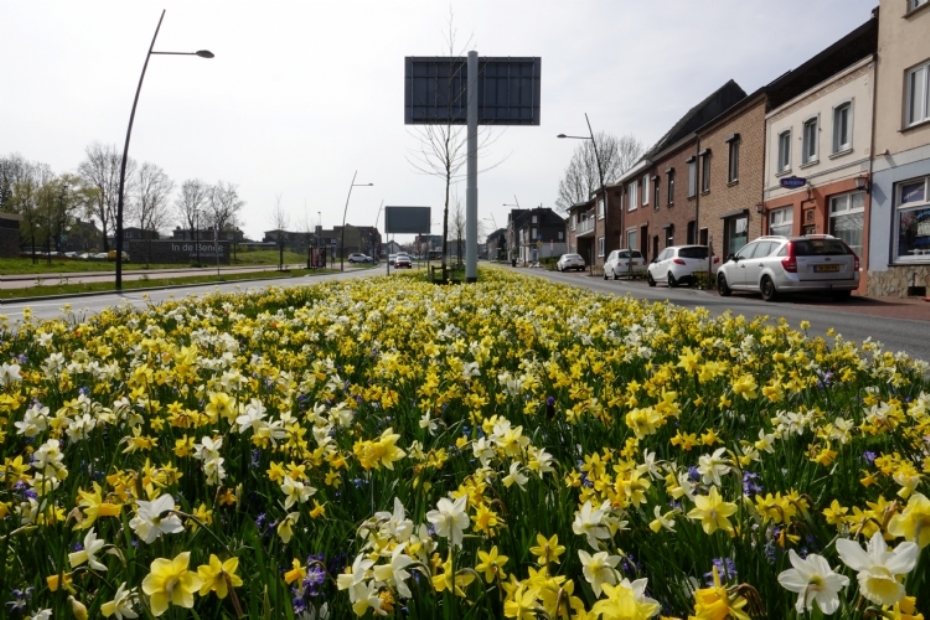 Bij de gemeente Landgraaf is afgelopen najaar een stadsentree aangeplant met het “Bijenparadijs Mengsel”. Dit bloembollenmengsel blijft onder de 40 cm hoog, waardoor de verkeersveiligheid volledig gewaarborgd blijft.