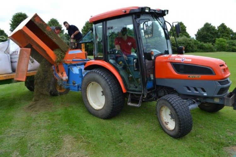 Hoofdgreenkeeper Hans Vijfhuizen reisde met het materieel naar golfbaan Zeewolde. Daar werden twee greens onder handen genomen. De GKB - Sandfiller combineert verticuteren met het inbrengen van zand. Dat moet absoluut droog zijn. Met de Sandfiller kun je tegelijkertijd je viltvorming kwijtraken, zuurstof in de grond brengen, je toplaag verschralen en de waterafvoer van de green verbeteren. daarmee wordt ook de vorming van algen op de green te voorkomen.