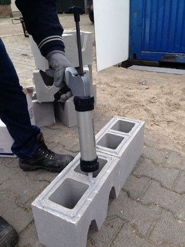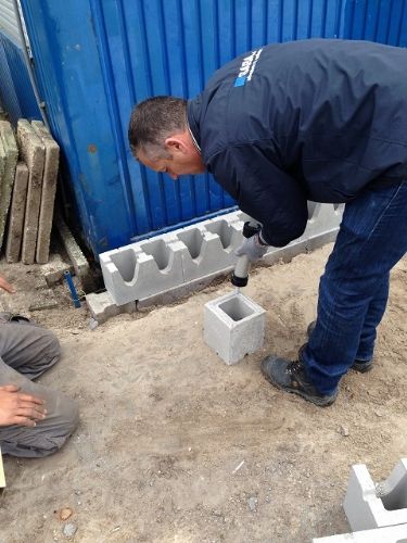 Het verwerken van de blokken kan op verschillende manieren. BIA Groene Wand Blokken met verwerking SABA Tack 750 zoals bij Loohorst: