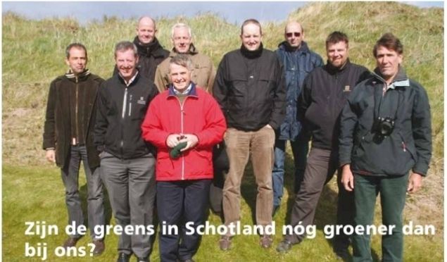 Het project draait met de steun van Barenbrug (groot in gras), Information Builders (informatie technologie) en AvH (informatie technologie). Op 7 maart jl. kwamen vertegenwoordigers van zeven golfbanen bijeen, om nieuwe afspraken te maken over het bijhouden van gegevens van het gebruik van duurzame grassoorten als roodzwenk op de golfbaan. Inhoudelijke informatie hierover wil Wirth pas geven 'zodra er een paar projecten op de rails staan.' Er is ook een gesprek geweest met een vertegenwoordiging van Deense golfbanen om te participeren in dit project, 'maar daarover is nog niets concreets te melden.' aldus Wirth. Ook met de WUR zijn er contacten, die zijn volgens Wirth momenteel bezig om de database waarin gegevens bijgehouden zijn en gaan worden te analyseren op de bruikbaarheid voor wetenschappelijke aspecten. De NGF trok eerder de stekker uit het project van de 'duurzame golfbanen' die gegevens verzamelden omtrent gebruik van roodzwenk op Nederlandse greens. Zes banen legden ruim vijf jaar hun bevindingen vast. De gevormde commissie werd voorgezeten door Wirth. Zover de redactie van GREENKEEPER heeft kunnen nagaan leidden de waardevolle gegevens nog niet tot bruikbare conclusies voor het gebruik van roodzwenk op Nederlandse greens. Flip Wirth neemt dus het initiatief om het interessante project van de duurzame golfbanen weer vlot te trekken. De zeven deelnemende banen, hier op bezoek bij Barenbrug zijn: 1. GC Princenbosch 2. Drentsche G&CC 3. GC Heelsumsche Veld 4. GC de Turfvaert 5. Sallandsche GC 6. Noord Nederlandse GC 7. GC Land van Thorn Verslag van de laatste activiteit van de werkgroep DGB, een bezoek aan Schotland