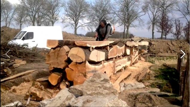 Tarzan Boomspecialisten en Tom van Duuren bouwen stammenmuur in Appeltern