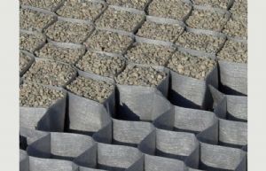 De greenkeeping heeft hiervoor gekozen, omdat deze roosters makkelijk oneffenheden in het terrein opvangen en daarom uitermate geschikt zijn om als grondstabilisatie te dienen voor de halfverharding waaruit de paden hier bestaan. De GroundGrid ligt op het looppad van green 2 naar het teecomplex van hole 3. Hier ontbreken dwarsgoten in het pad, waardoor stortbuien vaak spoelgaten veroorzaken. Hoofdgreenkeeper Peter Schalk: ‘Het is maar een klein stuk en het ligt er te kort om al een gefundeerde conclusie te trekken. De GroundGrid is op een bestaande Nobrecal-ondergrond gelegd en daarmee ook in- en afgevuld. Na een stortbui blijft de Nobrecal redelijk in honingraadstructuur liggen. Spoelgaten heb ik niet echt gezien na een fikse bui van 17 mm. Er lag nadien alleen wat Nobrecal in een buitenbocht van het pad, maar dat hark je snel weer op zijn plek.’ Volgens de productbrochure van leverancier RootBarrier zijn de eigenschappen van dit ‘geotextiel met honingraatstructuur DuPont Plantex GroundGrid’: sterk en flexibel, eenvoudig te plaatsen, licht van gewicht, waterdoorlatend, het rafelt niet en is gemakkelijk op maat te knippen.