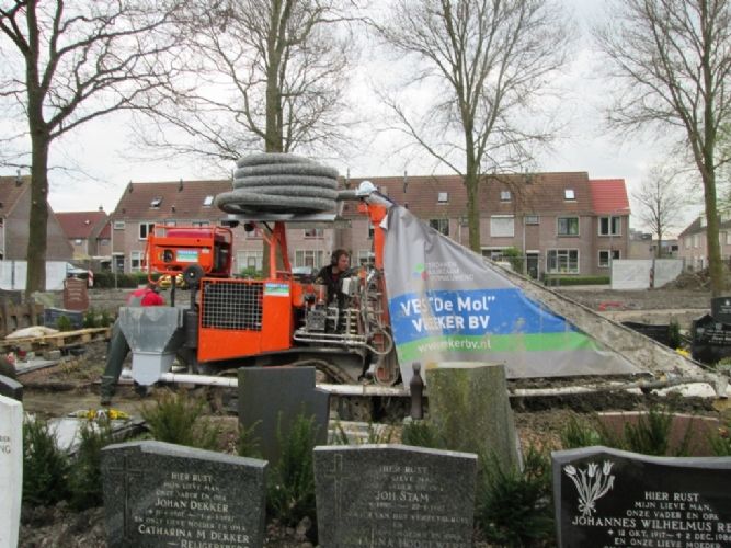 Omdat ontwatering op deze begraafplaats een probleem gaf zijn de bestaande watergangen gedempt en voorzien van een rond 315mm geperforeerde buis met omhulling gevuld met grof zand. Tevens zijn alle bestaande paden gedraineerd m.b.v. een speciaal gemaakt drainagemachine (90 cm) geschikt voor de smalle paden (Vreeker bv) Alles komt uit op een pompput waar het word uitgeslagen op open water.