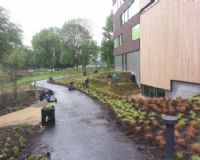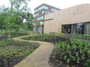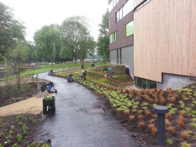 Afgelopen 17 juni werd door HKH Prinses Margriet de nieuwbouw Sophia Revalidatie in Den Haag geopend. De medewerkers van T&G vestiging West Nederland hebben voorafgaand aan de opening hard gewerkt om de tuin naar ontwerp van B+B architecten in te richten. Een groene oase midden in het stedelijk gebied. Ondanks de opening van Sophia Revalidatie wordt nog hard doorgebouwd en zal de tuin aansluitend op het bouwproces in fases worden afgerond. Indrukwekkend in deze aanlegfase is de vaste plantentuin met circa 17.000 stuks vaste planten en siergrassen, welke door T&G is aangelegd.