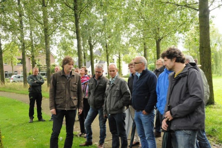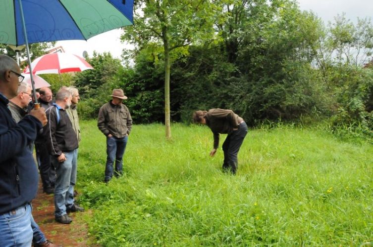 Na de presentatie volgde een wandeling door het groene Eibergen. Gert-Jan Koopman liet hier zien hoe lastig het is om de biodiversiteit van weitjes die vaak al twintig jaar verschraald worden naar een hoger niveau te brengen. Belangrijk aspect dat nogal eens vergeten wordt is, is het effect van een onregelmatig maairegime. Koopman: 'Als je ieder jaar op exact dezelfde tijd maait, zul je zien dat de kruiden die je wil bevoordelen zich aan zullen passen aan jouw maaifrequentie. Varieer je ieder jaar het tijdstip van maaien, kunnen planten zich niet aanpassen en bevoordeel je alleen de grassen.'