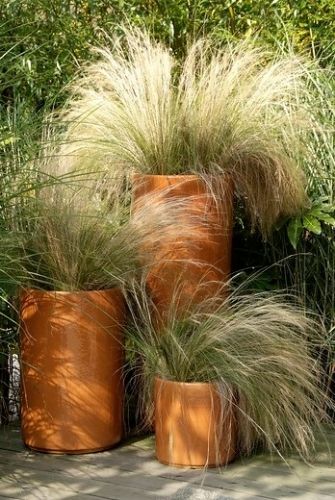 Al vanaf het vroege voorjaar zijn siergrassen mooi, als de eerste nieuwe grassprietjes boven de grond komen. Tot ver in oktober zijn er nog sierlijke bloempluimen te zien en ’s winters blijven veel soorten nog prachtig overeind staan. Veel soorten siergras groeien prima in een pot, als deze maar ruim genoeg is. Gebruik altijd verse potgrond en meng er wat scherp zand door. Geef regelmatig water en ook plantenvoeding. Zorg ook altijd voor een goede afwatering, gietwater en regenwater moet wel goed weg kunnen lopen. Een mooi siergras voor een pot is bijvoorbeeld het vedergras (Stipa tenuissima), maar denk ook eens aan de wat onbekende Carex montana, zo’n 40 centimeter hoog met sierlijk overhangend blad. Kies voor een hoge, rechte pot bijvoorbeeld het Japans bosgras (Hakonechloa). Heeft u echt een ruime pot beschikbaar probeer dan de dwergvorm van het pampasgras, Cortaderia selloana ‘Pumila’, die 125 cm hoog wordt.