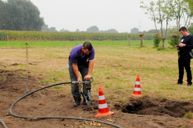 Losblazen grond voordat de grondzuigunit aan de slag kan