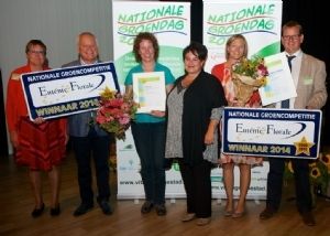 Dit gebeurde tijdens de Nationale Groendag die werd gehouden in Martiniplaza in Groningen. Deze dag werd georganiseerd door de Vereniging van Nederlandse Gemeenten, Platform31 en Entente Florale Nederland in samenwerking met de gemeente Groningen. De winnaars ontvingen hun prijs uit handen van staatssecretaris Dijksma van het ministerie van Economische Zaken. Tijdens haar toespraak zei Dijksma: 'Nederland wordt steeds groener maar is er nog veel te doen. Ik ben ervan overtuigd dat we samen Nederland nog leefbaarder, mooier en sterker kunnen maken.' Zilver en Brons Bij de categorie steden werd Doetinchem bekroond met Zilver en Dronten en Oisterwijk met Brons. In de categorie dorpen & kleine steden ontving Hoenderloo (gemeente Apeldoorn) Zilver en werden Willemstad (gemeente Moerdijk) en Vianen met Brons bekroond. Bergen op Zoom Het oordeel van de vakjury om deze Brabantse stad met Goud te oordelen is: De gemeente Bergen op Zoom is rijk bedeeld met historie, geomorfologie, gradiënten, landschappen, natuur en recreatieve voorzieningen. De West-Brabantse Waterlinie en de Brabantse Wal zijn onderscheidende kwaliteiten met allure. Bergen op Zoom kenmerkt zich door een “menselijke maat” en haar Bourgondische gastvrijheid maakt de titel “eeuwenoude, groene parel op de Brabantse Wal” meer dan waar. De jury constateert dat er deskundig, met bestuurlijk draagvlak en passie gewerkt wordt, vanuit een historisch perspectief en met een duidelijke doelgerichte beleidsvisie. Beesel Beesel is een klein dorp met een uitzonderlijk fraai landschap. Het buitengebied is in agrarisch beheer en bevat veel zeldzame natuur, zoals dassenburchten. Een dicht netwerk van recreatieve paden maakt van de gemeente een groene parel. Jaarlijks vindt een half tot driekwart miljoen bezoekers de weg naar Beesel. Kleurrijke particuliere tuinen en keramische objecten functioneren als visitekaartjes. Het landschapsontwikkelingsplan Beesel bevat een wervende visie en levert een groot draagvlak. De gemeente is uiterst ambitieus op het gebied van milieu en duurzaamheid. Beesel ziet kans om op korte termijn (in 2030) energieneutraal te worden. Beoordeling De visie, het beleid en de uitvoering daarvan in de praktijk worden door de jury beoordeeld op basis van een groot aantal criteria. Naast het groen in de binnenstad of dorp heeft ook natuurbeheer en groene recreatie daarin een belangrijke plaats. De Entente Florale jury heeft haar bevindingen voor elke gemeente vastgelegd in een uitgebreid rapport, dat de vertegenwoordigers van het gemeentebestuur tijdens de prijsuitreiking werd aangeboden. Hierin zijn naast de conclusies ook aanbevelingen opgenomen. Bijzondere waardering De Entente Florale jury kende ook een aantal Certificaten van Bijzondere Waardering toe (in willekeurige volgorde): • Vianen: voor Natuur & Landschap op grond van de aandacht in beleid en aanwezige ambtelijke kennis ten gunste van het behoud van de grienden. • Hoenderloo: voor Communicatie & Participatie op grond van de rol van de dorpsraad voor behoud van de leefbaarheid van het dorp en de dorpsgemeenschap. • Willemstad: voor Toerisme & Recreatie, omdat de gemeente de historische vesting en uitgebreide watersportvoorziening - door haar unieke ligging aan de Hollandse en Zeeuwse wateren - aantrekkelijk houdt. • Willemstad: voor Cultuurhistorisch erfgoed op grond van het feit dat het ruimtelijk karakter van Willemstad cultuurhistorisch gezien bijzonder en van grote maatschappelijke waarde is. • Doetinchem: voor Natuur & Landschap op grond van haar al enkele decennia gevoerde succesvolle natuurbeleid en beheer in het openbaar groen en haar inspanningen voor het behoud van het karakteristiek Achterhoeks landschap. Verschil ranglijst groene steden WUR Vorige week maakte de WUR bekend welke 31 grote steden van Nederland de groenste steden van Nederland zijn. De WUR kijkt hier specifiek naar de hoeveelheid openbaar groen per vierkante meter in de bebouwde kom per woning. Deze deskstudie verschilt van Entente Florale waarbij een vakkundige jury naast het doornemen van de beleidsvisies ook de steden en dorpen bezoekt. Niet zozeer de hoeveelheid groen staat centraal, maar de kwaliteit, lange termijn visie van de gemeenten alsook de betrokkenheid van inwoners bij realisatie, uitvoering en beheer. Ook wordt gekeken naar hoe de maatschappelijke en economische waarde van groen zijn geïmplementeerd in beleid en uitvoering. Externe onafhankelijke experts van GGD GHOR Nederland, Stadswerk, IVN, Groei&Bloei, Alterra, TEEB-stad (groen en economie) en ecologen zijn hierbij betrokken.