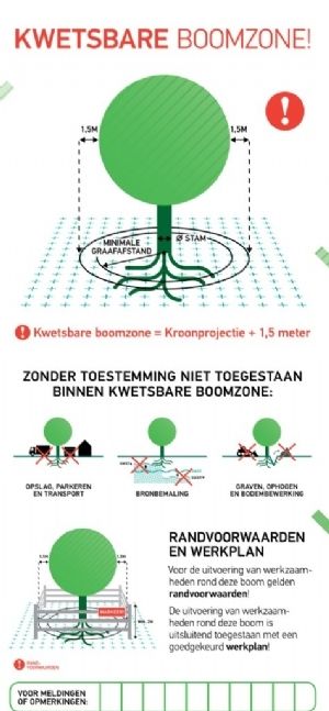 De bomenposter ‘Werken rond bomen’ toont de kwetsbare zone direct rond een boom en laat zien welke belangrijke randvoorwaarden er gelden voor de uitvoering van werkzaamheden. In menig kantoor van de groenbeheerder en werkkeet van de aannemer hangt de bomenposter aan de wand. Volgens het Norminstituut Bomen zou het beter zijn als de poster ook in de buurt hing van de bomen die bescherming behoeven tijdens werkzaamheden.