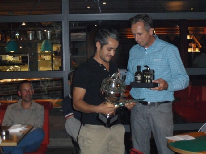 Trots kon hij zeker blijven, want tijdens het ook al even voortreffelijke diner mocht Luis ook nog eens de eerste prijs en de wisselbeker in ontvangst nemen. Tweede werd Manfred van der Wal (Golfpark Rotterdam) en de derde plaats was voor Simon Ceulemans (Groen Geel). De prijs voor de Neary werd door Menno de Haan meegenomen naar golfclub Broekpolder.