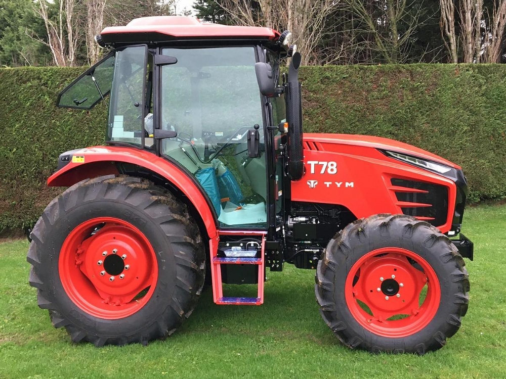 TYM compacttrekker – Deutz TCD2.9L4 motor – 75 pk – Power shuttle transmissie – Max rijsnelheid 39.1 km per uur – 90 Liter brandstoftank – 2320 kg hefarm lift capaciteit.